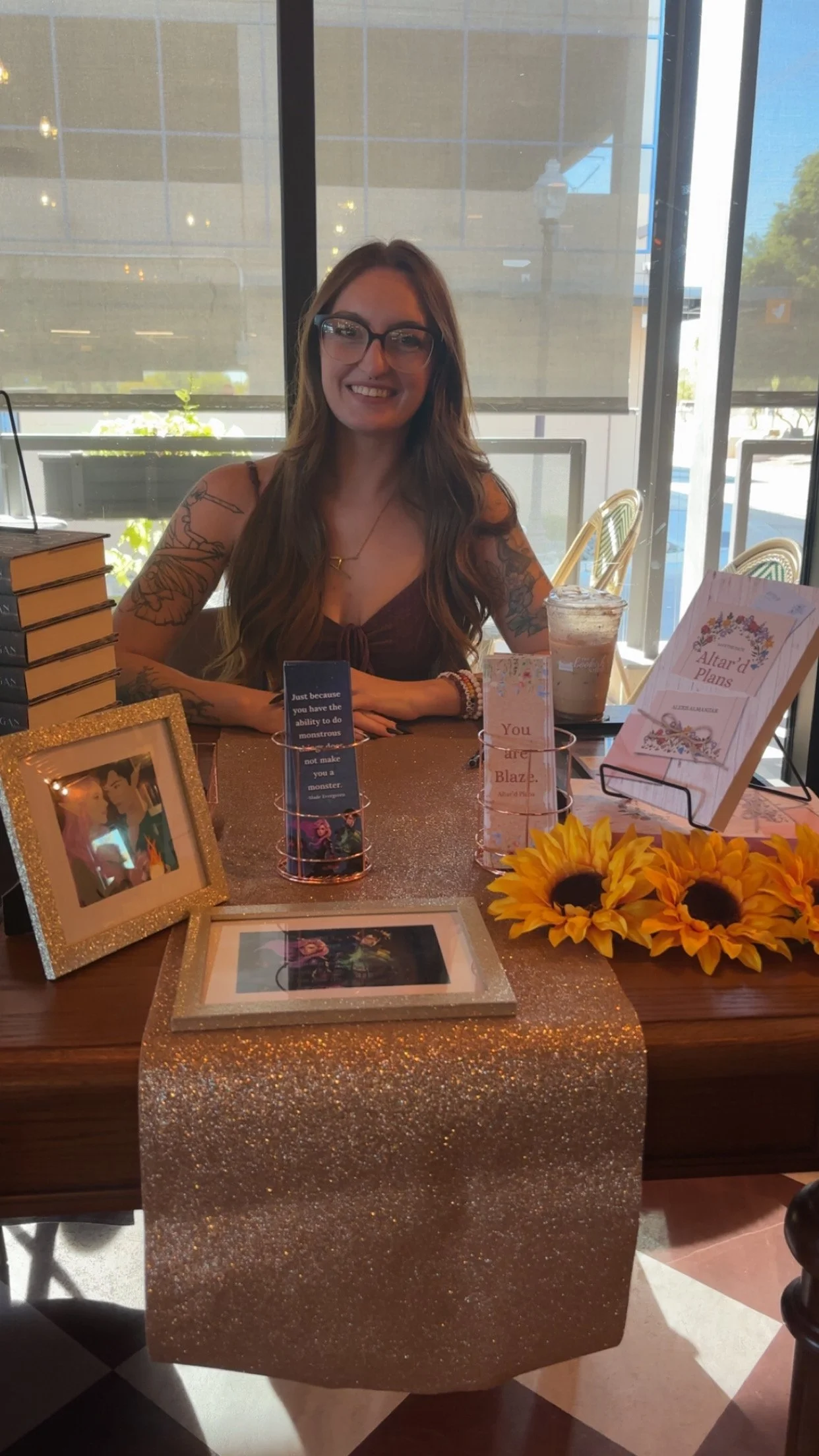 Pictured: Alexis posing at her booth at The Bookish Shop.